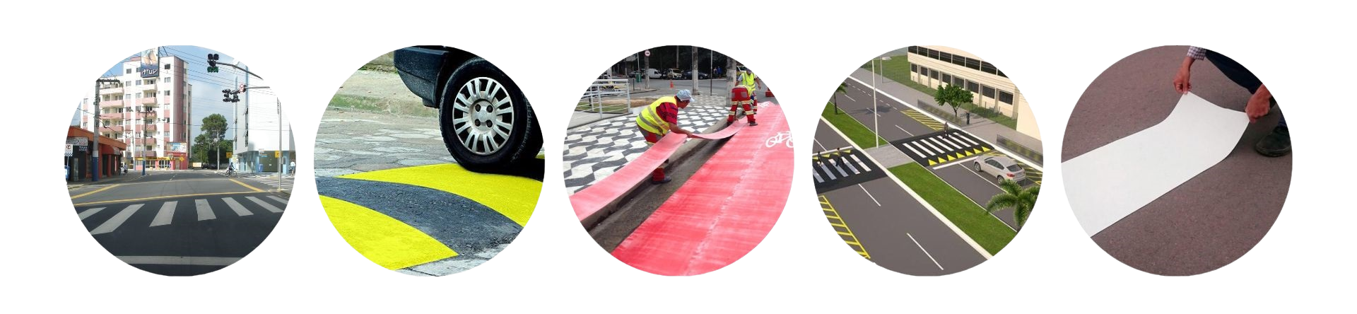 As faixas amarelas de laminado elastoplástico com 40 cm de largura, geralmente são utilizadas na sinalização de lombadas ou quebra-molas.